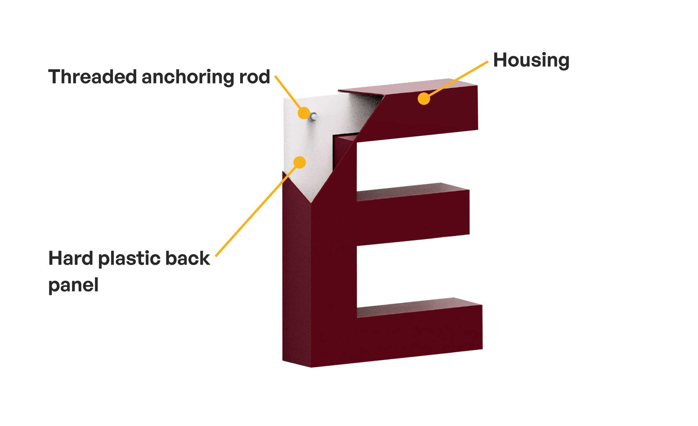 The most popular type of 3D signage with face illumination. Best price/performance ratio.
