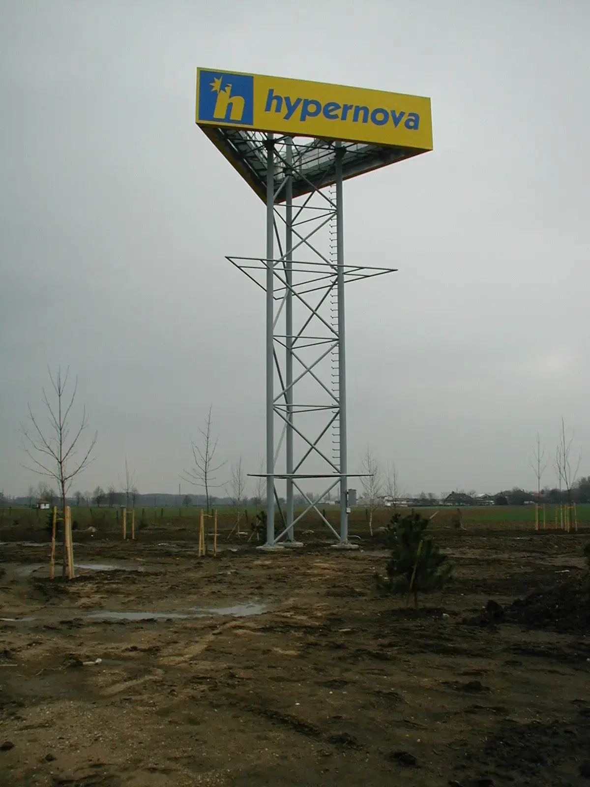Máme za sebou stovky realizací a zkušenosti, díky nimž zvládneme jakýkoliv projekt. Dokladem je i náš rekord – nejvyšší pylon v ČR, 37 metrů vysoký Hyundai v Nošovicích.